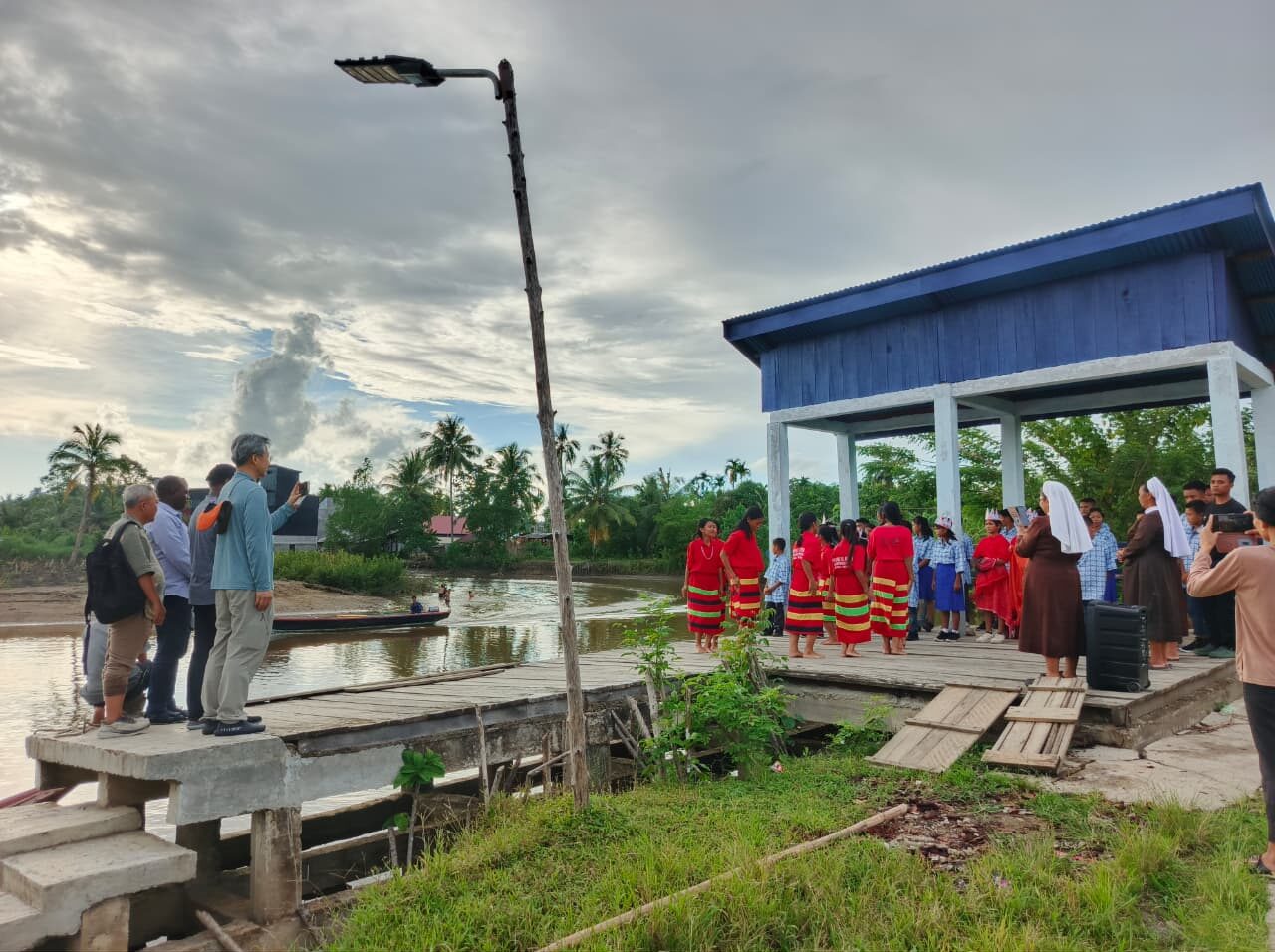 Mentawai, Kamis, 5 Februari 2026, Komunitas Paroki Santo Damian Saibi Muara, Mentawai, menerima kunjungan tiga orang tamu dari Kongregasi Konsolata. Kedatangan mereka disambut dengan penuh sukacita oleh para suster KSFL dan anak asrama Sta. Teresia dari Kalkuta. Penyambutan dilakukan di dermaga paroki dengan menampilkan tarian Turu Popok, lagu daerah Mentawai, serta tarian Monotor yang dibawakan oleh anak-anak asrama. Penyambutan ini menjadi tanda kegembiraan dan penghormatan umat atas kehadiran para tamu.