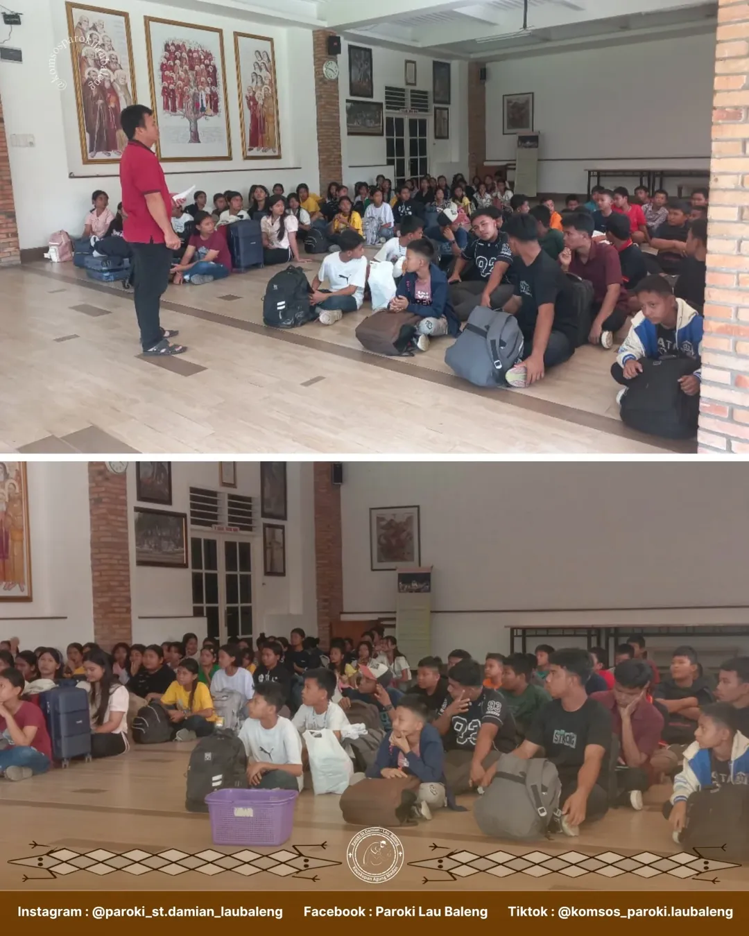 Lau Baleng, 2 November 2025 – Suasana penuh sukacita mewarnai awal bulan November ketika para putra-putri altar Paroki St. Damian Lau Baleng melaksanakan retret pembinaan rohani di Rumah Pembinaan Fransiskus (RPF) Nagahuta, Pematang Siantar. Kegiatan ini berlangsung selama dua hari, 1–2 November 2025, dengan tema besar “Menjadi Anak-Anak Misdinar yang Berkualitas.” Sebagaimana telah disepakati, titik kumpul rombongan berada di depan Terminal Lau Baleng. Rencana keberangkatan dijadwalkan pada pukul 06.30 WIB, namun karena beberapa peserta datang dari stasi yang jauh—seperti Stasi Mardinding, Pasir Tengah, dan Lau Mulgap—keberangkatan baru dimulai pukul 08.00 WIB. Meski demikian, keterlambatan tersebut tidak menyurutkan semangat para peserta untuk mengikuti kegiatan rohani ini.