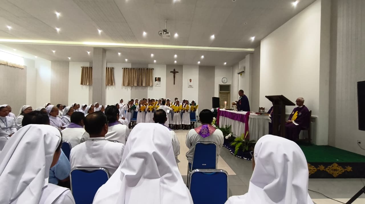 Rangkaian acara dibuka dengan Perayaan Ekaristi khidmat yang dipimpin oleh Uskup Agung Palembang, Mgr. Yohanes Harun Yuwono. Dalam sesi pembuka yang berlangsung meriah dan menyentuh hati, Bapa Uskup menegaskan lima pilar utama yang harus menjadi warna dasar pelayanan para religius, yaitu: