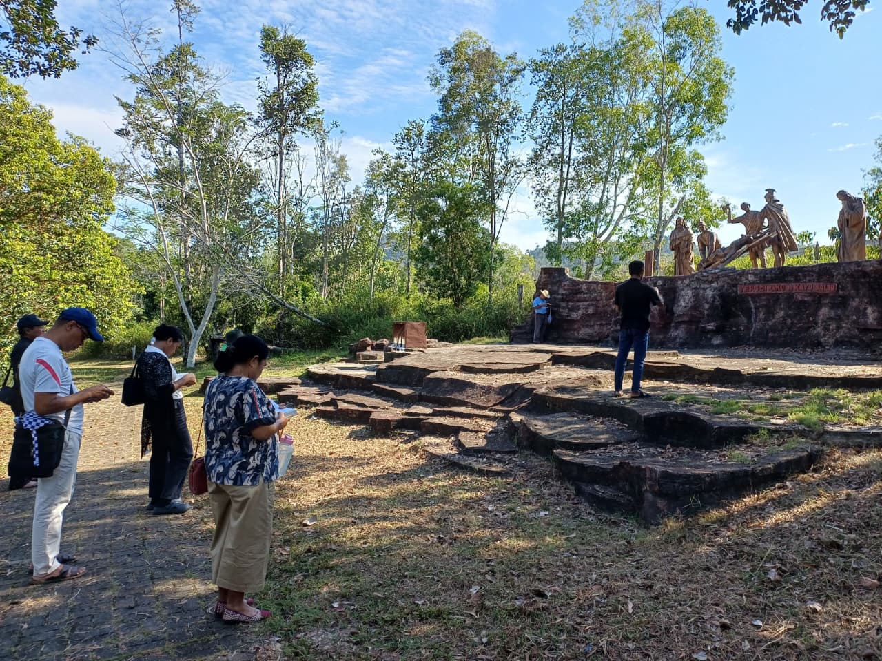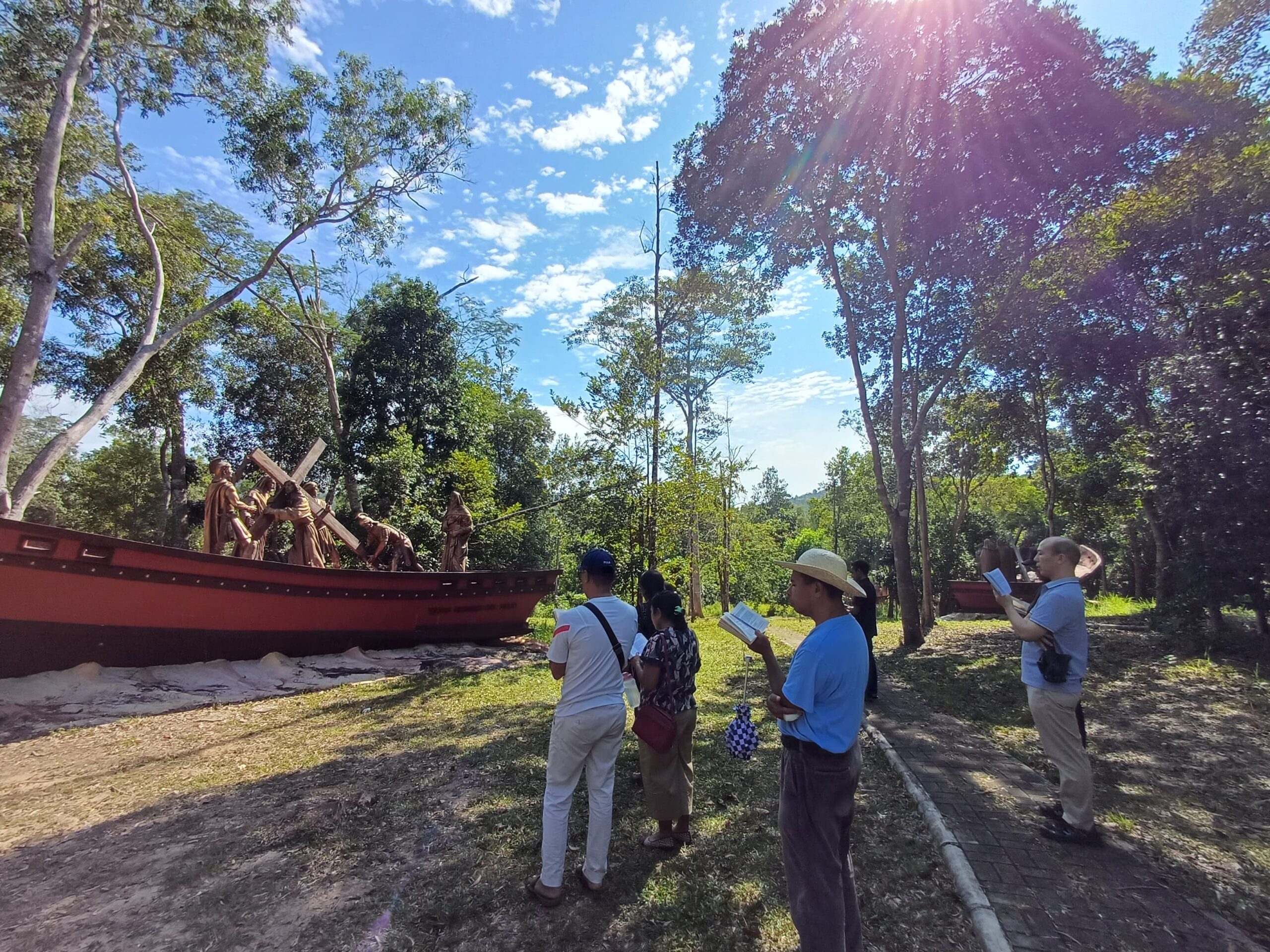 Sesudah Jalan Salib, komunitas mengunjungi museum eks kamp Vietnam, menelusuri kisah keteguhan dan daya juang manusia di tengah penderitaan. Ziarah kemudian diakhiri dengan suasana santai di sekitar gereja eks kamp, saat komunitas menikmati kue pisang kukus bersama sambil menyaksikan monyet-monyet bergelantungan di pepohonan — momen sederhana yang menghadirkan sukacita, keakraban, dan rasa syukur atas keindahan ciptaan Tuhan.